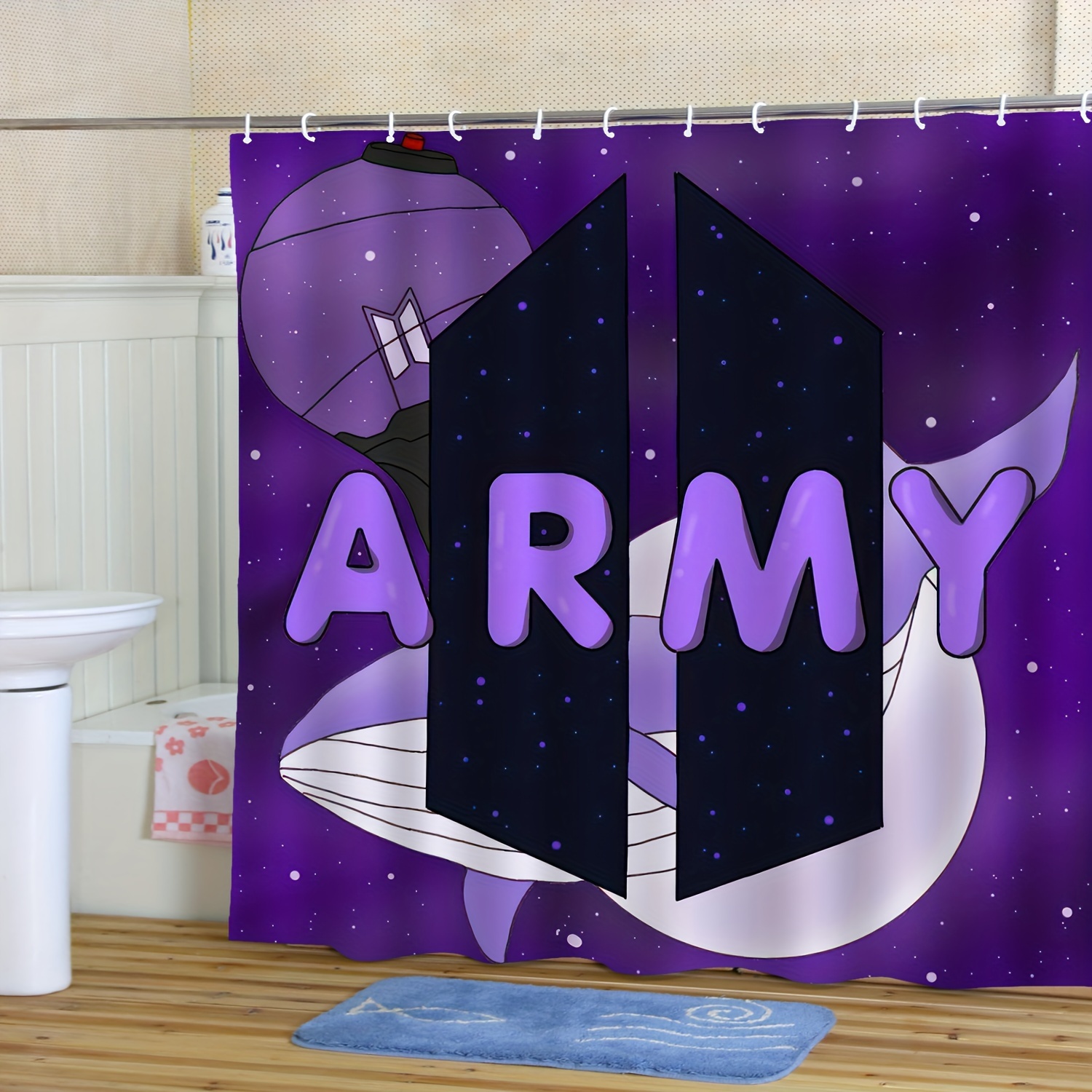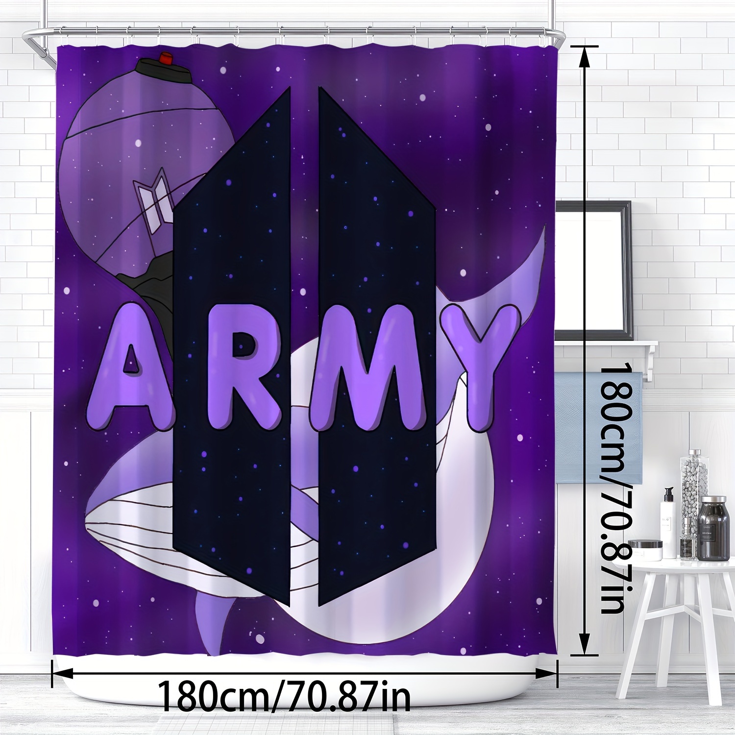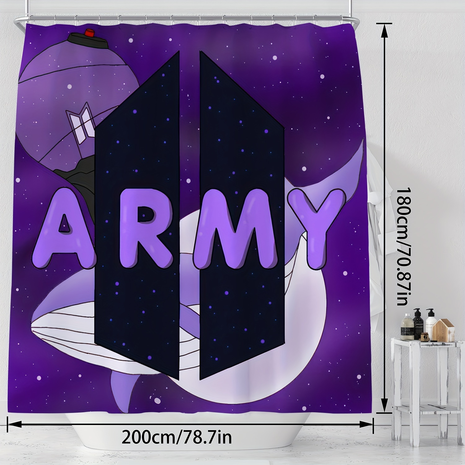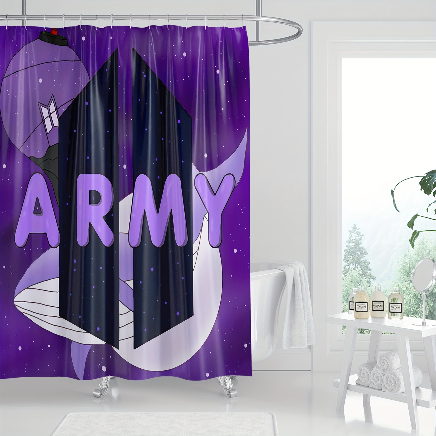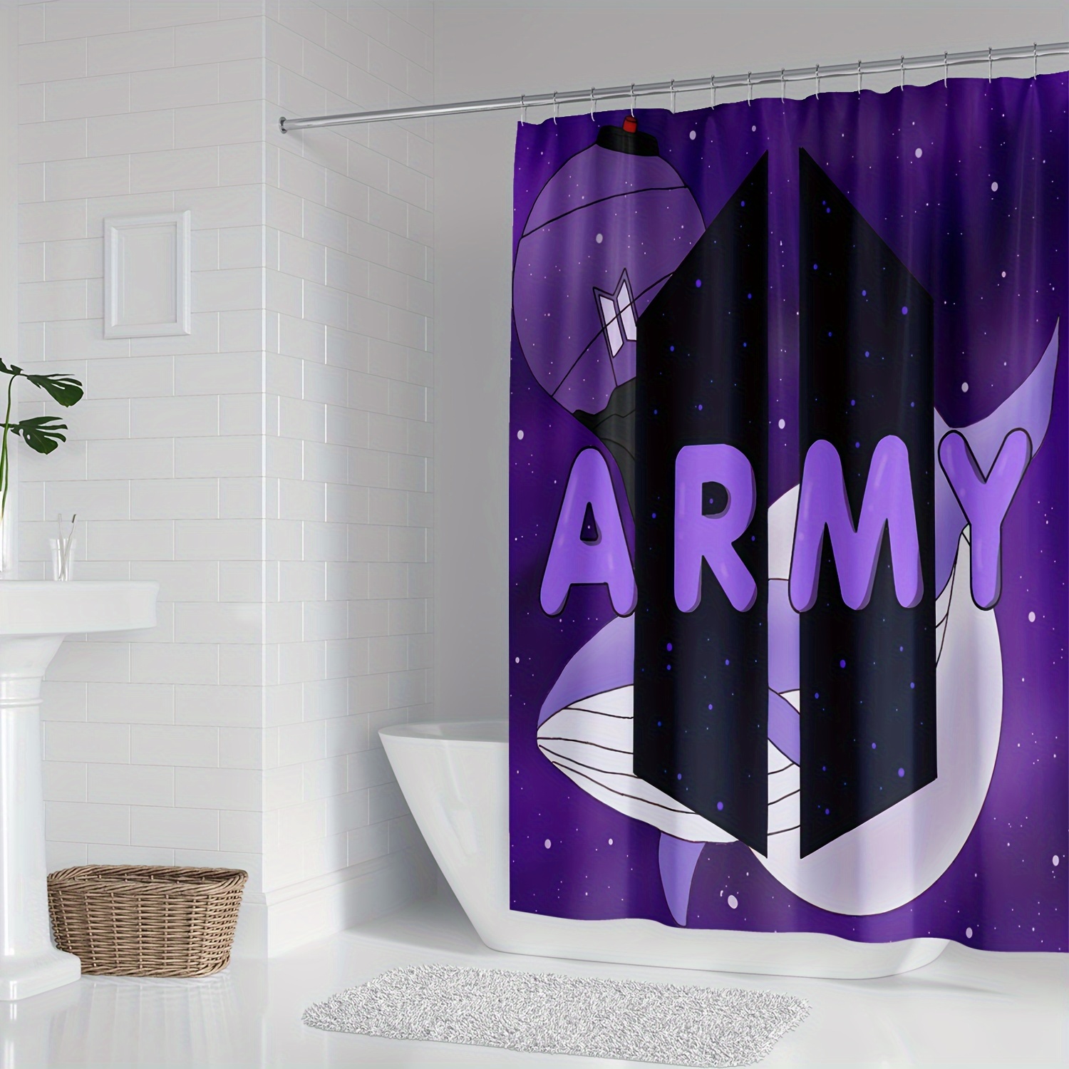 1pc K-POP Themed Shower Curtain - Vibrant Purple & Black Design with Galaxy & Rocket Motifs, Perfect for K-Pop Fans, Machine Washable Polyester, All-Season Use, Bathroom Decor|Space Theme Decor|Polyester Fabric, Kpop Room Dec