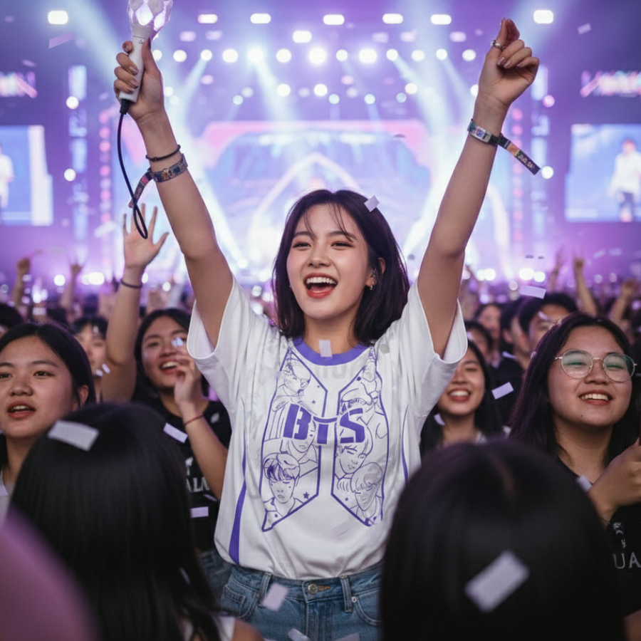 O tom lilás envolve a peça com significado, representando confiança, cuidado e a conexão única entre BTS e ARMY. É aquela camiseta que aquece o coração, que dá vontade de usar em dias especiais… e também naqueles em que tudo o que a gente precisa é se sentir um pouco mais perto deles.